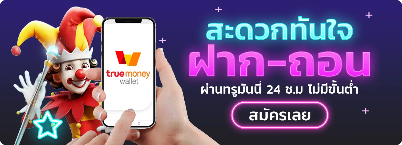 ตอบ : ใช้ระบบอัตโนมัติที่ทำรายการได้ตลอด 24 ชั่วโมง ไม่มีขั้นต่ำ เงินเข้าบัญชีภายใน 30 วินาที รองรับทุกธนาคารและ True Money Wallet